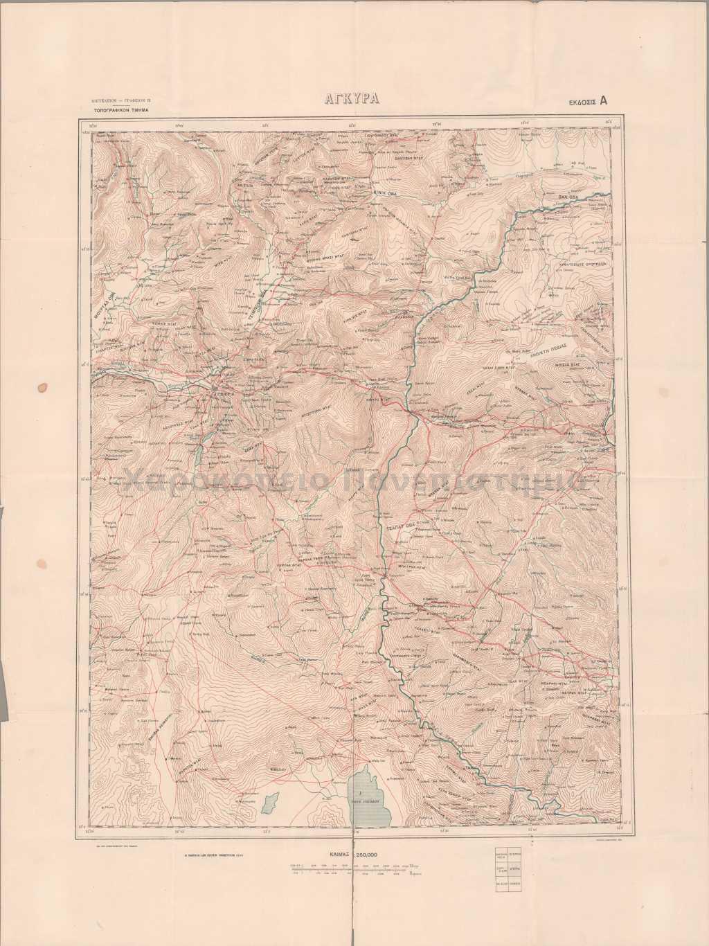 Ά Έκδοσις, Εκ του Τυπογραφείου Πολ Βιδόρη, Αι Καμπύλαι δεν έχουσιν υψομετρικήν αξίαν. Γραμμένο ιδιοχείρως στην πίσω πλευρά του χάρτη "Άγκυρα, 7η Πυρ/χία"